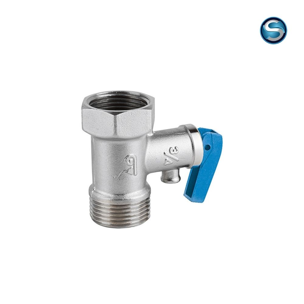 Con dispositivo de descarga manual por palanca. PN 16. Construcción en latón UNE-EN 12165 cromado. Extremos rosca M-H, ISO 228/1. Muelles acero inox. Taraje estándar fijo a 8 bar. Cierre NBR. Temperatura máxima 110°C.